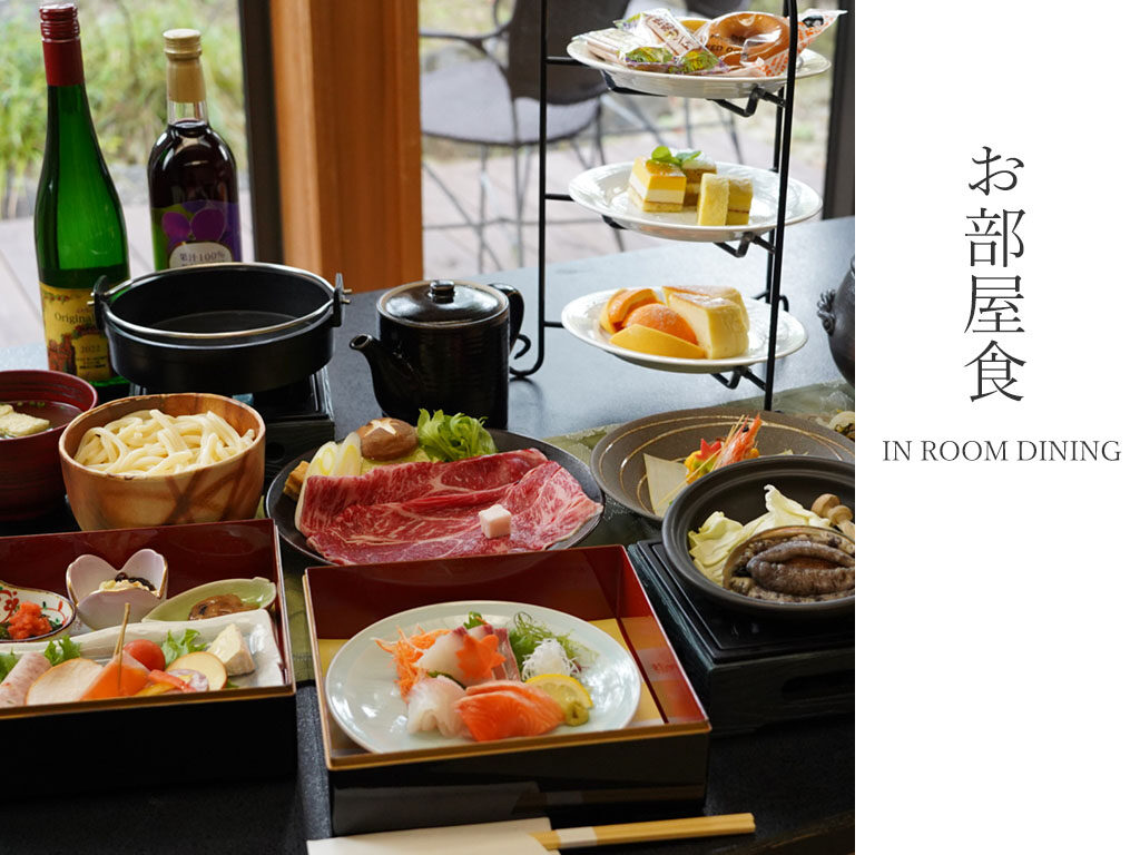 周囲を気にせず、プライベートな空間でゆったりをお食事を楽しめるお部屋食。